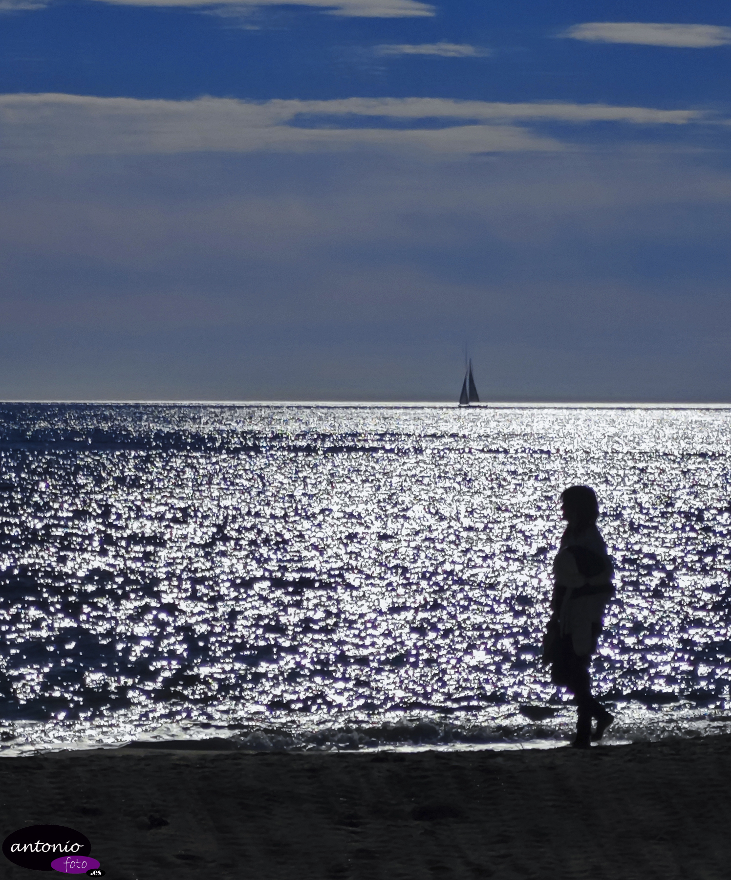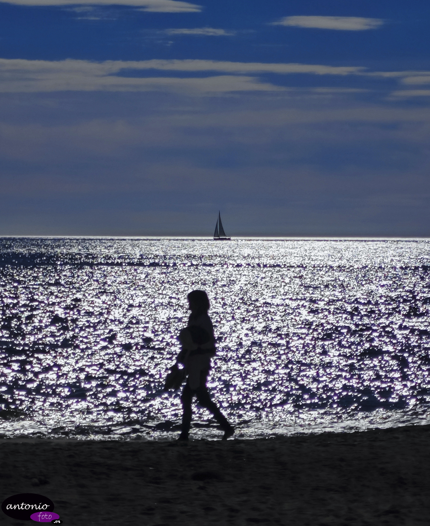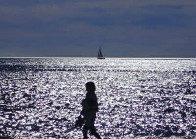 Por la mañana contraluces en la playa.
